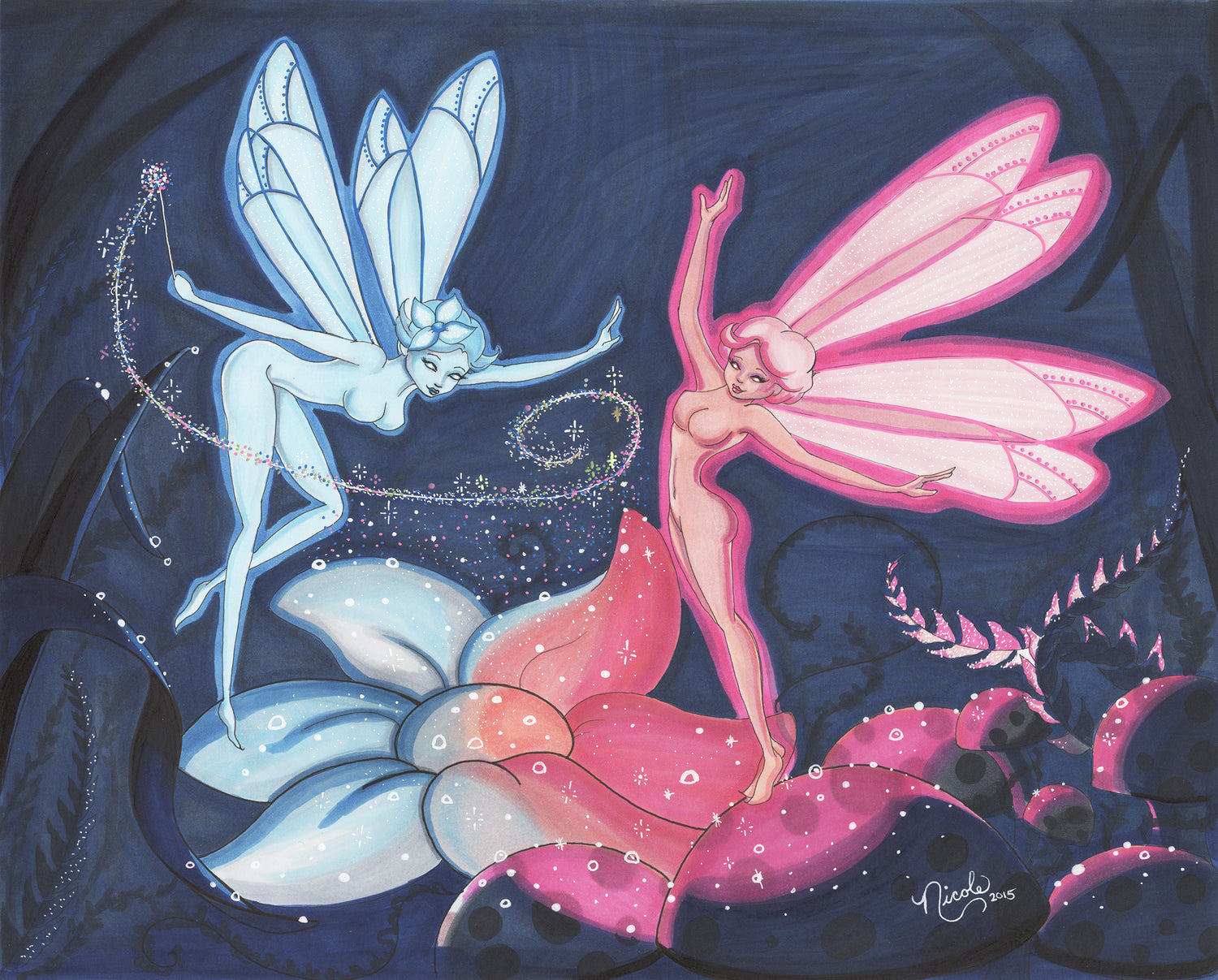 Dance of the Fae 9x12" original Mixed Media cartoon by Nicole Brune